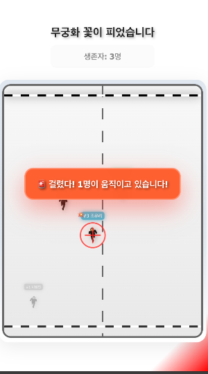- 술래가 뒤돌아봤을때 전진하고 있던 참가자는 탈락합니다.